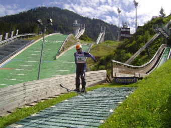 Wir bieten Ihnen die einmalige Gelegenheit, die Welt der Skisprungasse kennen zu lernen. In der Erdinger Arena in Oberstdorf sind auf den Jugendschanzen K19 und K 30 Sprünge bis zu einer Weite von 20m möglich! Systematisch aufgebaut von unseren erfahrenen Skisprungtrainern tasten Sie sich mit Vorübungen an die kleinsten der Oberstdorfer Schanzen heran. Mit einfachen skifahrerischen Grundkenntnissen ist es möglich, sowohl im Winter als auch im Sommer (auf Kunststoff-Matten), in nur einem Tag „Skispringer“ zu werden. Denn – der max. „Luftstand“ (Abstand vom Boden) beträgt nur 40cm. Springen Sie hinein in die Welt der Adler!