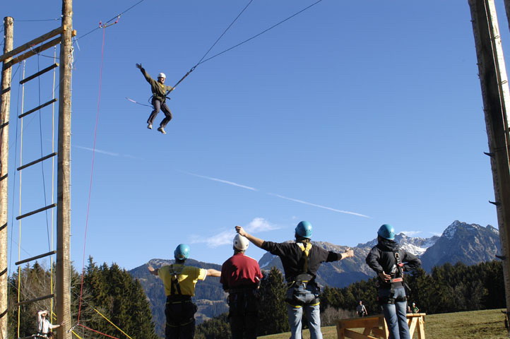 Es gilt „challenge by choice“, absolute Freiwilligkeit. Im Team wächst jeder über sich hinaus, wagt Neues und gewinnt Vertrauen in sich und seine Kollegen. Ein Höhenflug mit Motivationsgarantie!