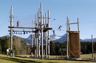 Später geht’s dann in den sog. Top-Rope-Bereich. Hier sichert das Team den in Aktion befindlichen Teilnehmer, während dieser z.B. an der Kletterwand nach oben kraxelt, juchzend in der Riesenschaukel schwingt oder sich mit zitternden Beinen auf dem Pamper Pole aufrichtet, um dann beim Blick auf das umliegende Panorama das Wow-Gefühl dieses persönlichen Triumphs zu genießen. Der Sprung in die Teamsicherung löst die Spannung und gibt das Gefühl, sich auf die Kollegen verlassen zu können!