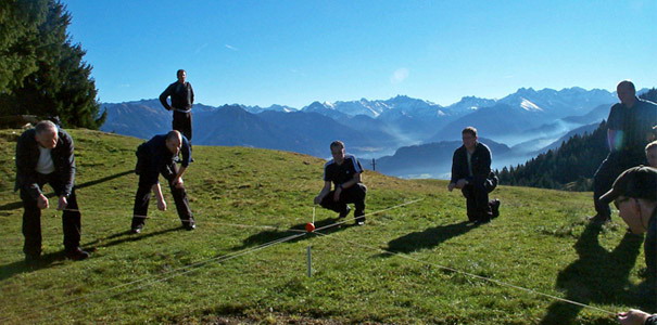 In einer Zeit von 2 – 3 Stunden durchlaufen kleine Teams à 10 – 12 Personen einen Team-Parcours mit vier verschiedenen Übungen aus dem Initiativ- bzw. Trainingsbereich.